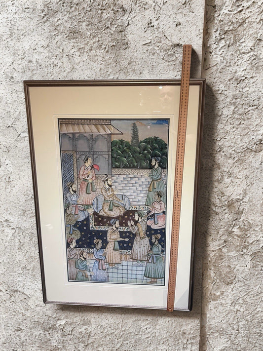 Hand-Painted Mughal Court Scene, Gold & Silver, Framed 91x64cm c.1970s